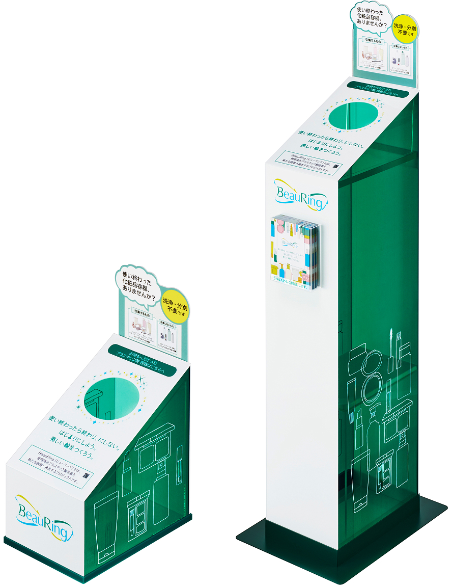 収集対象は、使用済みのプラスチック製化粧品容器です。